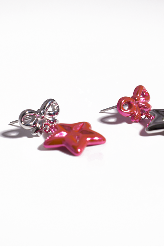 Star & Bow Drop Earrings – 18K Gold Plated with Pink Crystal