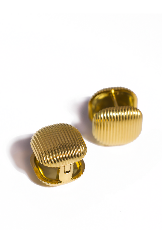 Golden Earrings, 18K Gold Plated Stainless Steel, Non-Tarnish "The Hamburger" Shape