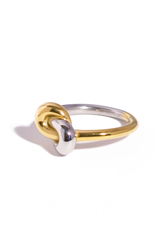 [Ring] Two-Tone Knot Ring – 18K Gold Plated & Stainless Steel