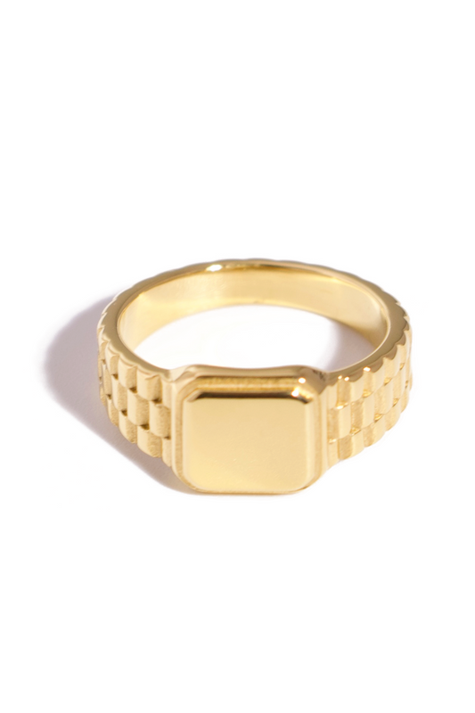 [Ring] Watch Band Inspired Signet Ring – 18K Gold Plated, Stainless Steel