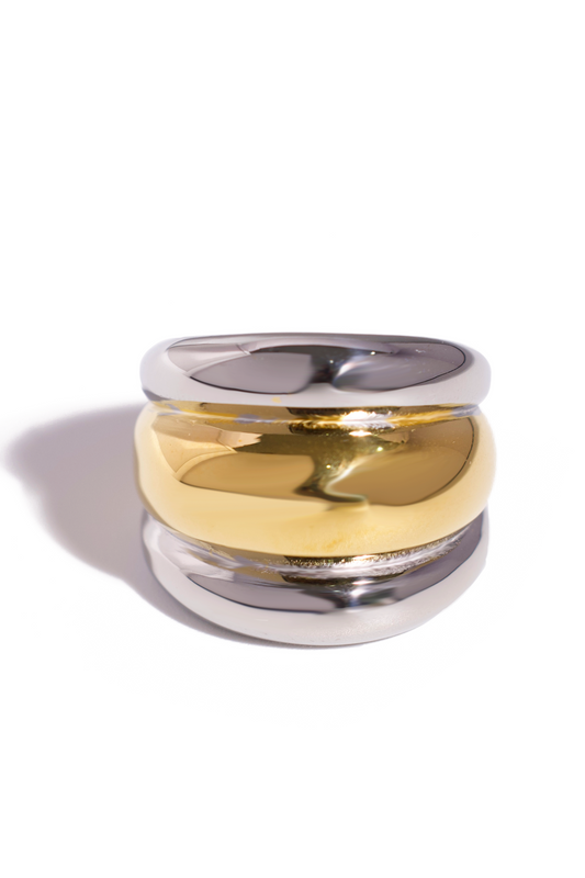 [Ring] Bold Duo-Tone Dome Ring – 18K Gold Plated Stainless Steel
