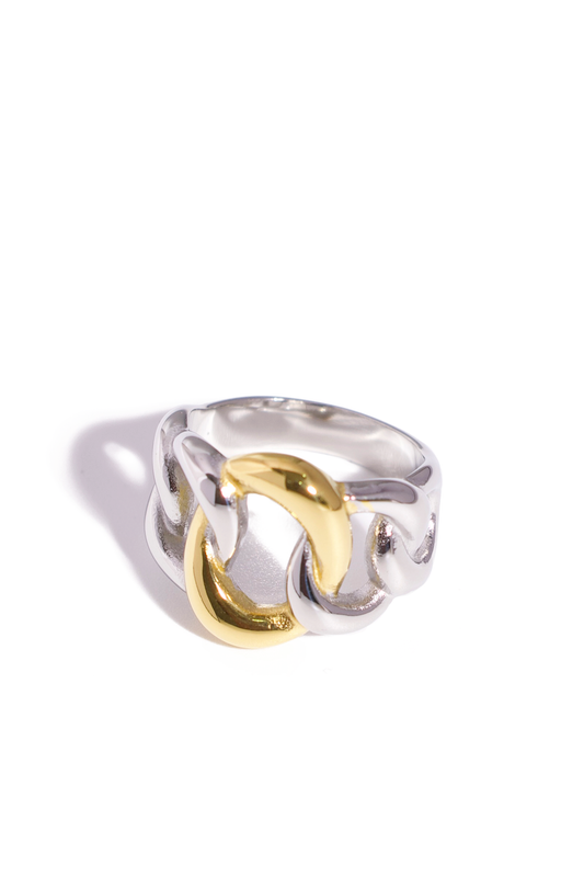 [Ring] Dual-Tone Chain Link Ring – Bold & Modern Statement Piece, Stainless Steel