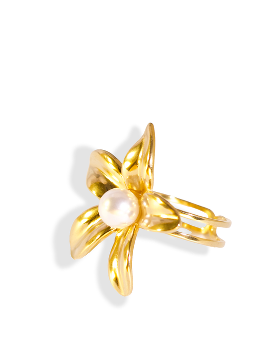 Floral Statement Ring – 18K Gold Plated & Pearl Detail