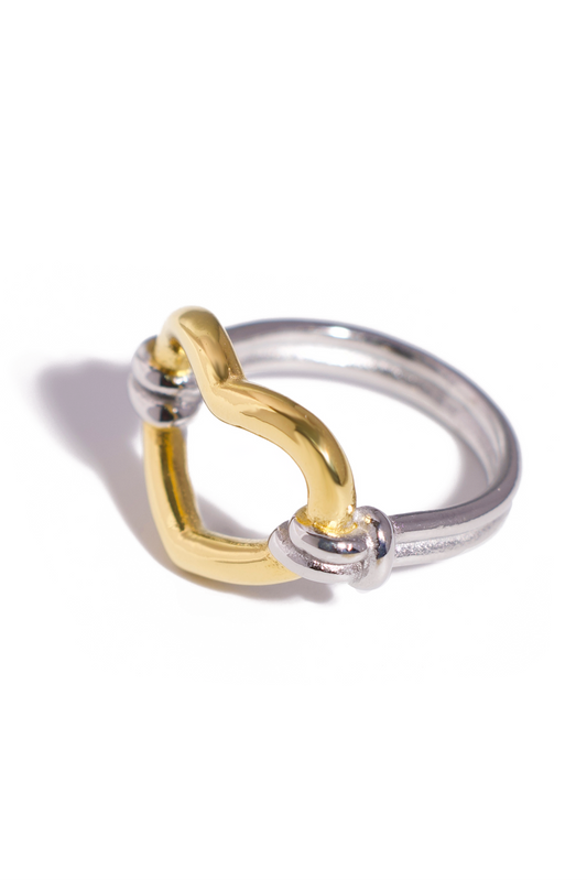 [Ring] Two-Tone Open Heart Ring – Modern Love Statement, Stainless Steel
