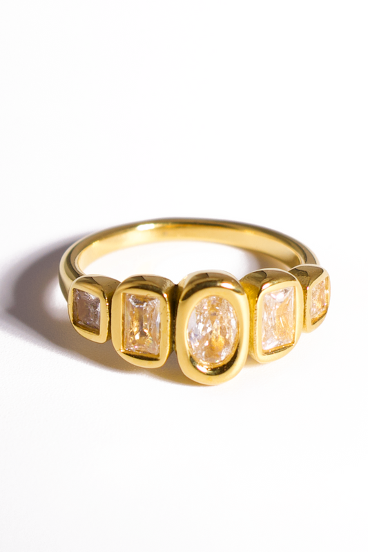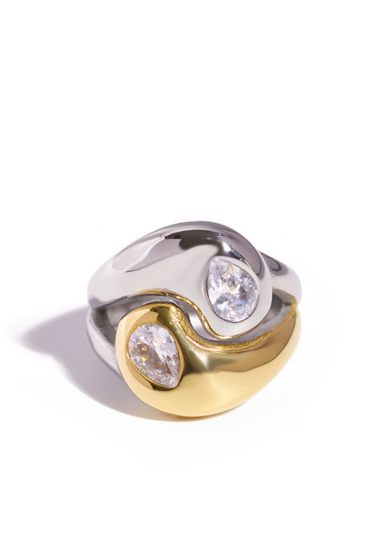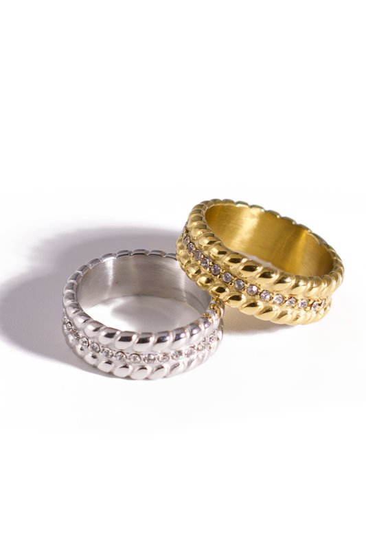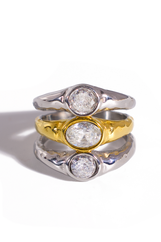Glittering zirconia-adorned rings that dazzle with every movement.